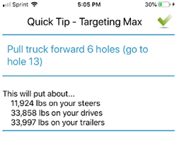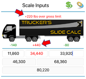 Use the app to quickly see axle/gross weights and which ones, if any, are over regulation.