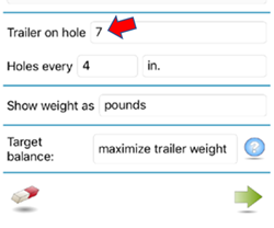 (optional)Starting from the front of the trailer, count the number of holes until the first slide pin. Enter this number in the "Trailer on hole" box.